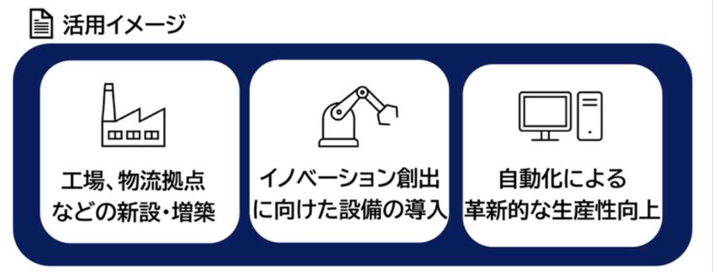 予想される補助金の使い道:大規模な機械設備の購入や新工場の設置など、企業の生産体制を大きく刷新するための資金。
