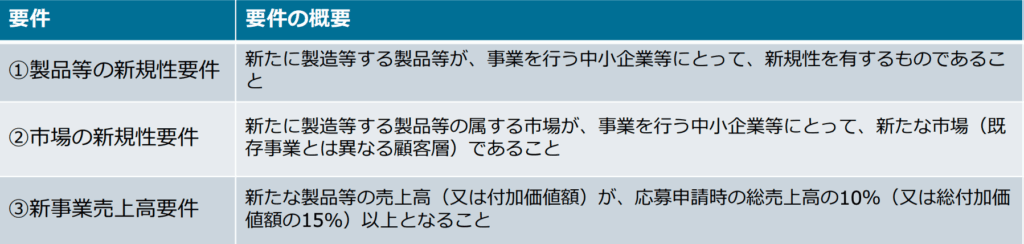 • 新事業進出補助金にはどんな要件が設けられているかがわかる