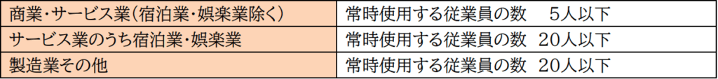 小規模事業者の定義は以下のとおりです。必ず自社が当てはまるかを確認しておきましょう。